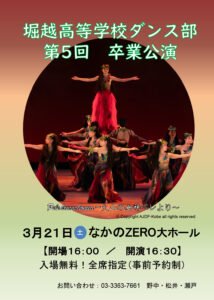 堀越高等学校ダンス部「第5回 卒業公演」にゲスト出演いたします!